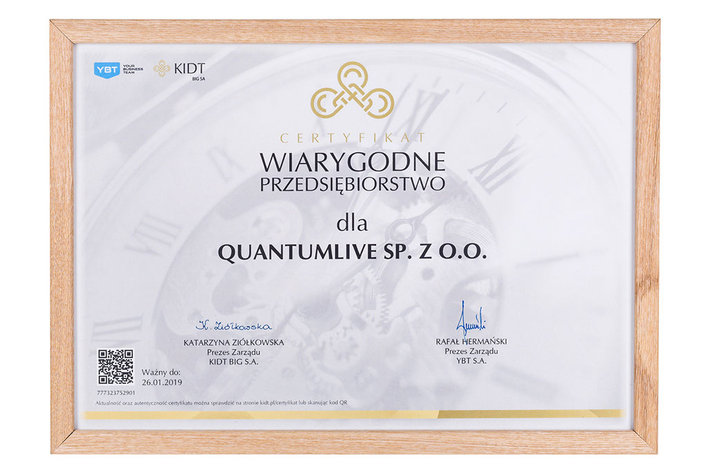 Po raz 20. elitarna grupa przedsiębiorców, w tym firma QUANTUM, została uhonorowana prestiżową nagrodą WIKTORIA – Znak Jakości Przedsiębiorców, świadczącą o doskonałej kondycji firm, które budują i wpływają na rozwój polskiej gospodarki. Statuetki zostały przyznane w 10. kategoriach. Jubileuszowe nagrody zostały wręczone w trakcie Wielkiej Gali, która miała miejsce w dniu 21 października br. w Warszawie. W uroczystym wydarzeniu wzięli udział laureaci i ich goście, a także szacowni przedstawiciele władz państwowych i samorządowych oraz ludzie ze świata nauki, kultury i mediów.